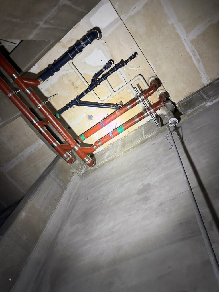두 번째 단계는 PVC 배관 교체 설치다. 주철 배관 자리에 부식이 없고 시공성이 뛰어난 PVC 배관을 새로 설치했다. PVC 배관은 내구성이 높고 유지 관리가 편리하며, 통기 구조를 형성하기에 유리한 소재다. 연결 마감도 누수가 발생하지 않도록 꼼꼼하게 처리했다.