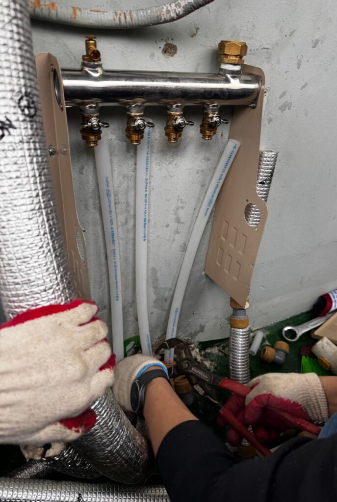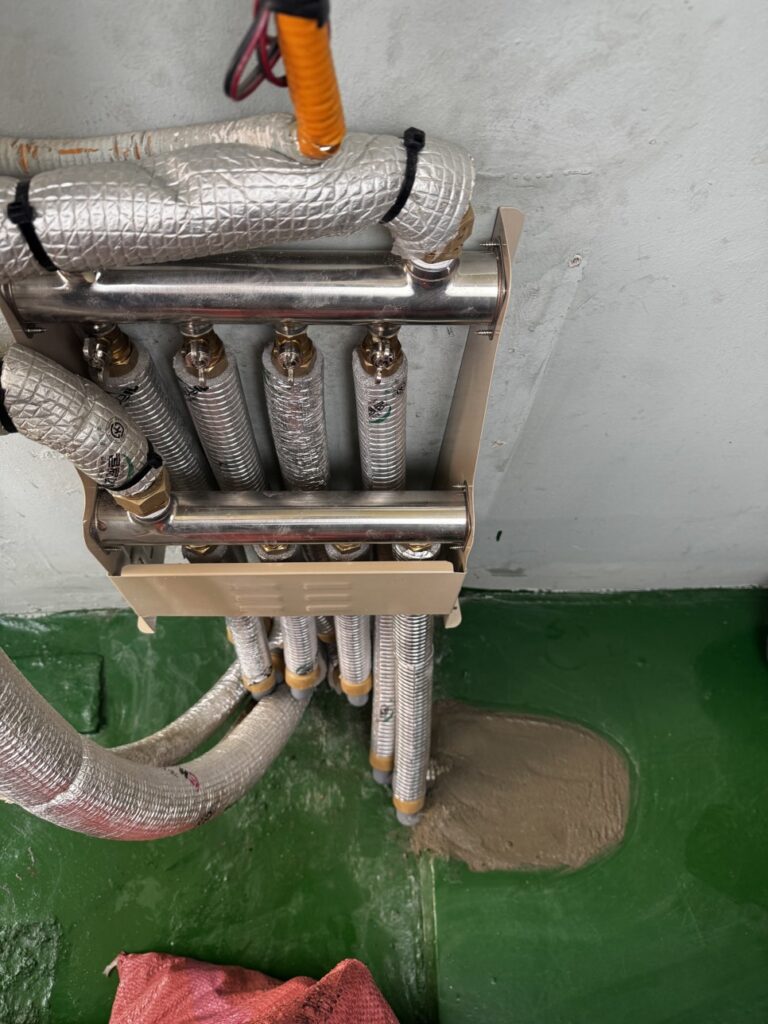 이번 청주 현장에서는 분배기에서 연결된 난방 배관 일부 구간에서 균열이 발견됐다. 추가 점검 결과 분배기 본체에서도 미세한 누수 징후가 포착됐다.