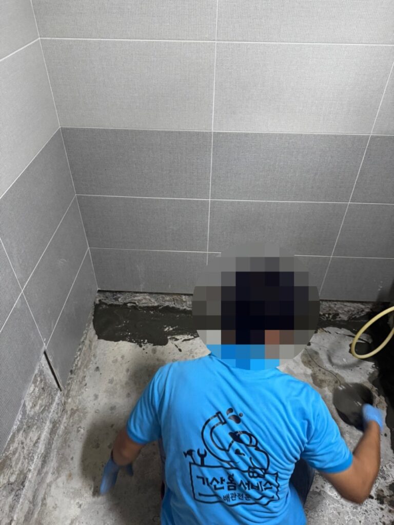 방수 공사는 가장 안쪽 공간부터 시작해 욕실 입구 방향으로 이동하며 진행된다. 빈틈이 생기면 곧 누수로 이어질 수 있어 꼼꼼한 시공이 필수다.